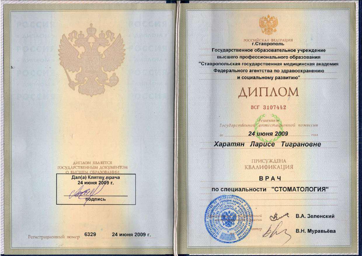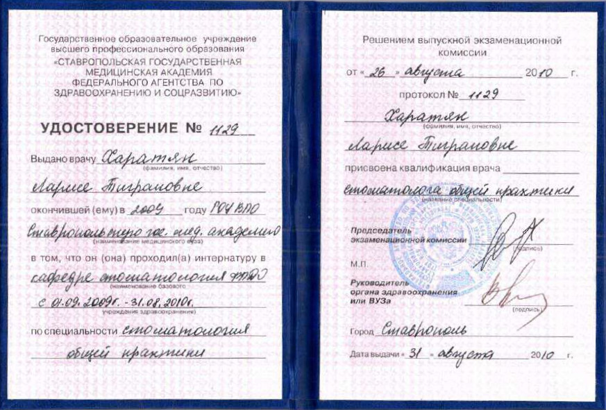 - 2004-2009 гг. стоматологический факультет Ставропольской государственной медицинской академии.